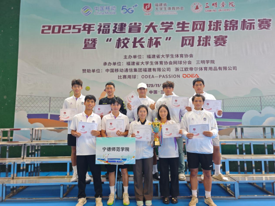 2025年11月7日至11月9日,由福建省大学生体育协会、福建省大学生体育协会网球分会主办的“2025年福建省大学生网球锦标赛暨校长杯网球赛”在福建三明成功举行。宁德师范学院派出大学生组与领导组两支队伍参赛,经过三天的激烈角逐,凭借出色的发挥和顽强的拼搏精神,在多个项目中取得历史性突破,载誉而归。